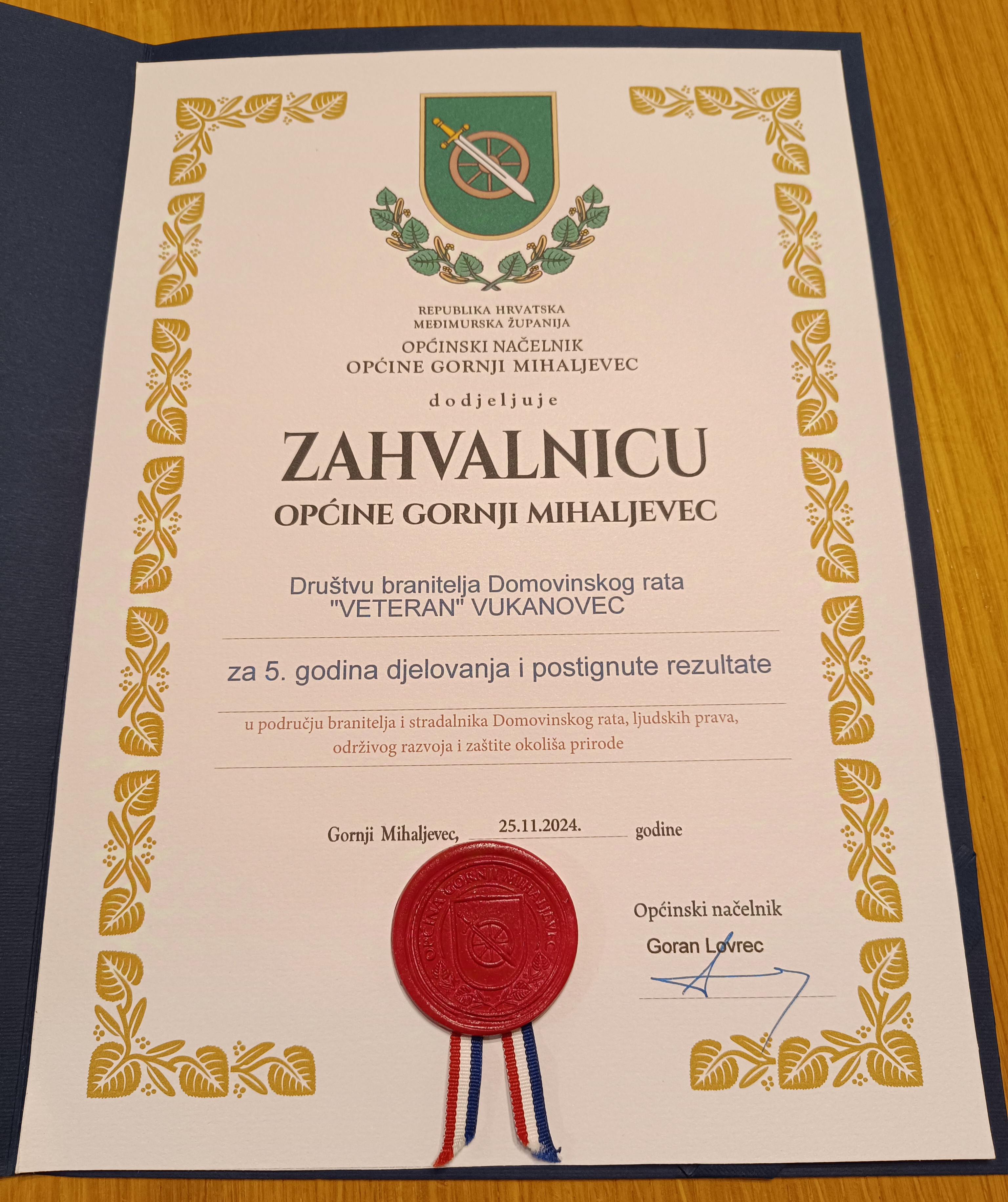 Dana 25. studenog 2024. godine održana je Svečana sjednica Općine Gornji Mihaljevec.